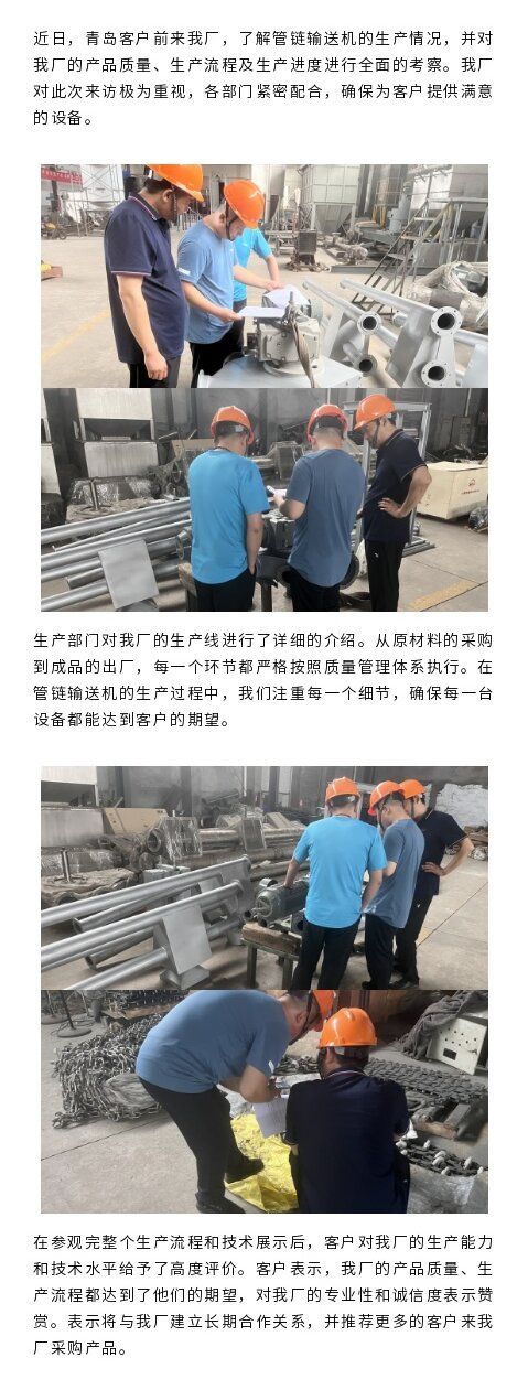 近日青島客戶到我廠查看管鏈輸送機(jī)生產(chǎn)進(jìn)度